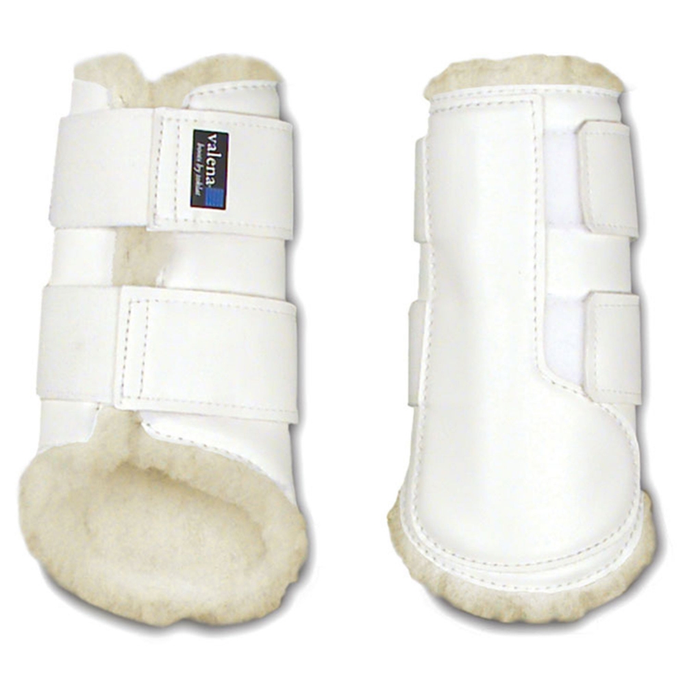 Valena boots are designed for flat work or turnout. The durable marine vinyl outershell and WoolBack™ fleece lining combine to make a comfortable, long-lasting boot. Extra-wide elastic maintains its stretch over hard use and many washings, keeping the boots securely in place without adding pressure points. Sold as a pair. Made in the USA.